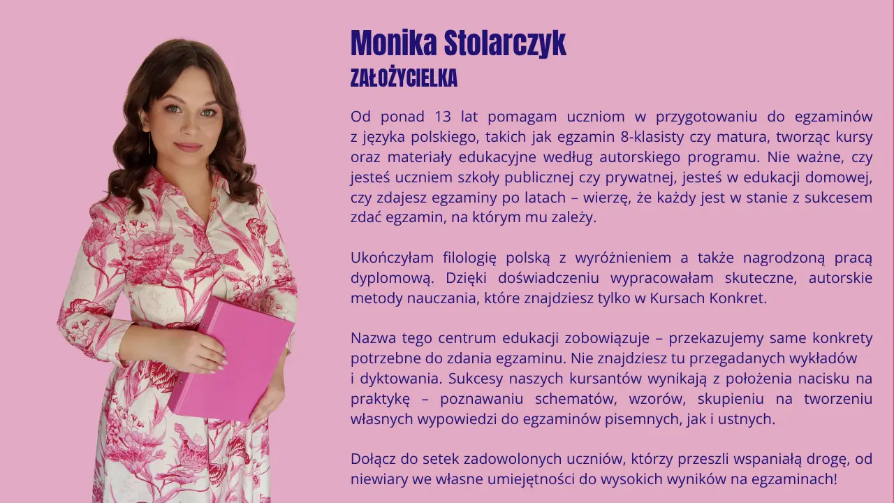 Zapraszamy na kurs przygotowujący do matury z polskiego w nowej formule, na którym najważniejsze są konkrety i praktyka. Uczymy zagadnień w 100% zgodnych z wymaganiami egzaminacyjnymi – tylko tego, co naprawdę przyda się na maturze. Na lekcjach skupiamy się na rozwiązywaniu arkuszy, nauce pisania wypracowań, tworzeniu wypowiedzi do matury ustnej.
